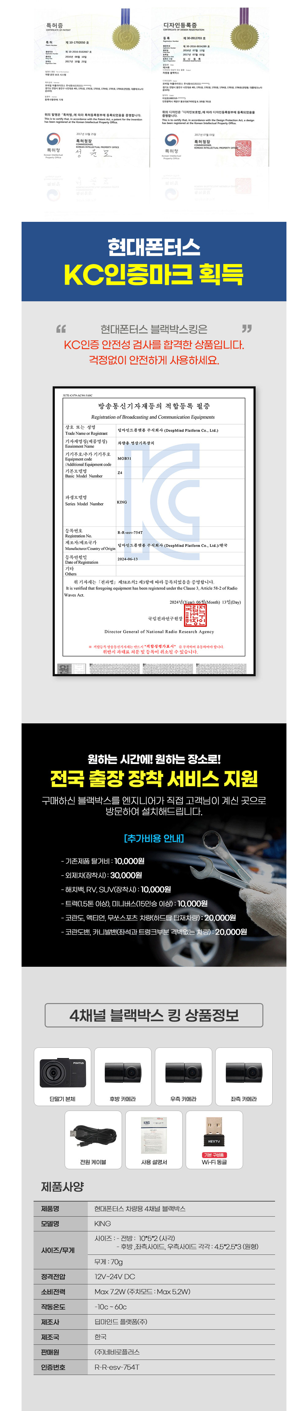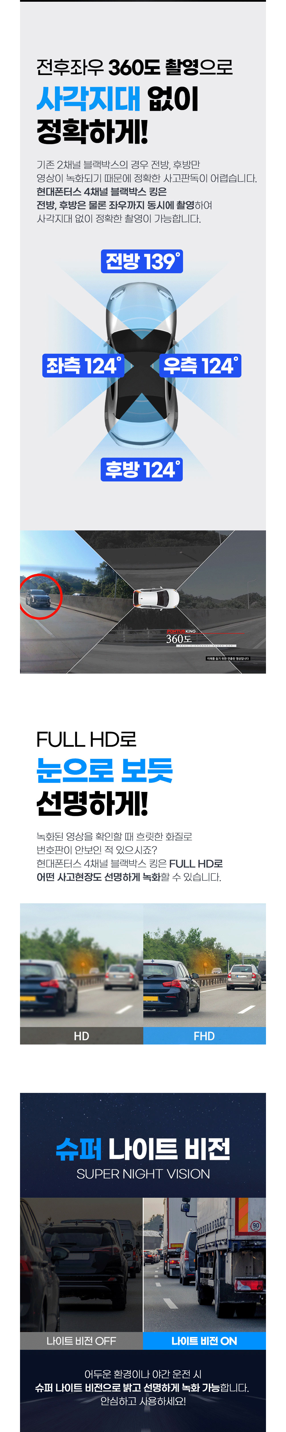 4채널 현대폰터스 킹 64기가 전후방 카메라 + 실내 사이드 카메라 ALL FULL HD